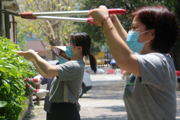 會(huì)后,黨支部成立了三支創(chuàng)文突擊隊(duì)小分組。第一小組負(fù)責(zé)學(xué)校衛(wèi)生清理。大家興沖沖拿起掃把,清理學(xué)校的每一個(gè)角落,特別是學(xué)?!八澜恰眳^(qū)域,為學(xué)生返校創(chuàng)建整潔的校園環(huán)境。第二小組負(fù)責(zé)“牛皮癬”清除。校園代表著一個(gè)學(xué)校的精神面貌,“校園牛皮癬”不能留??矗蠹艺谂Φ冂P除“牛皮癬”呢! 第三小組負(fù)責(zé)校園的美化綠化工作。話不多說(shuō),同志們趕緊拿上修枝剪,把花草修剪得更加整齊、美觀!