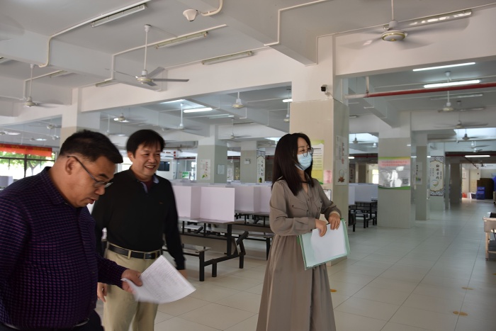 校園疫情防控專項(xiàng)督導(dǎo)。隨后,督查組姚佳老師關(guān)切詢問了中山一中鐵城中學(xué)師生員工返校人數(shù)、師生健康狀況、核酸檢測(cè)、健康監(jiān)測(cè)管理、食堂就餐、疫情防控以及應(yīng)急措施等具體情況。??倓?wù)處韋奮勇主任詳細(xì)匯報(bào)了清明節(jié)返校及學(xué)校疫情防控工作,為做好清明節(jié)后的疫情防控工作,鐵城中學(xué)嚴(yán)格落實(shí)了“兩個(gè)全面”,以保證校園安全。韋主任匯報(bào)中提及,一、全面排查全體師生及其同住家人的健康和出行情況。4月5日清明節(jié)當(dāng)天下午,鐵城中學(xué)全面排查了全體師生及其同住家人的“粵康碼”和“行程卡”,確保師生節(jié)后健康安全返校;二、全面消毒。4月5日,校后勤職工對(duì)學(xué)校進(jìn)行全面消殺消毒。持續(xù)通風(fēng),確保每一間教室的安全性。此外,鐵城中學(xué)韋主任也介紹了鐵城中學(xué)每天的師生晨午晚檢制度、疫情防控以及應(yīng)急措施等工作落實(shí)情況。