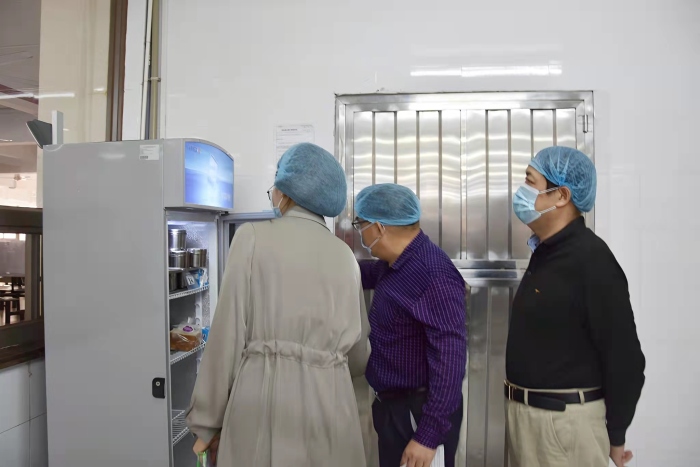 實(shí)地檢查食堂疫情防控工作。中山一中鐵城中學(xué)歐大新副校長(zhǎng)詳細(xì)匯報(bào)了鐵城中學(xué)食堂的疫情防控舉措,鐵城中學(xué)一直嚴(yán)格把好食品采購(gòu)關(guān),把好食品衛(wèi)生關(guān),全力確保師生食品安全和營(yíng)養(yǎng),讓師生滿意、家長(zhǎng)放心。