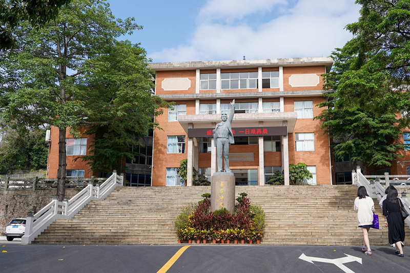 ▲楊仙逸中學校內的楊仙逸雕像。