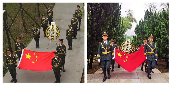 全體師生向楊仙逸將軍行祭拜禮,進(jìn)行莊重的集體宣誓。宣誓聲落下后,國(guó)旗班同學(xué)護(hù)送、敬獻(xiàn)花圈。劉朝暉校長(zhǎng)帶領(lǐng)全體師生,依次安靜、有序、莊重地向楊仙逸將軍獻(xiàn)花,表達(dá)誠(chéng)摯感謝與崇高敬意。