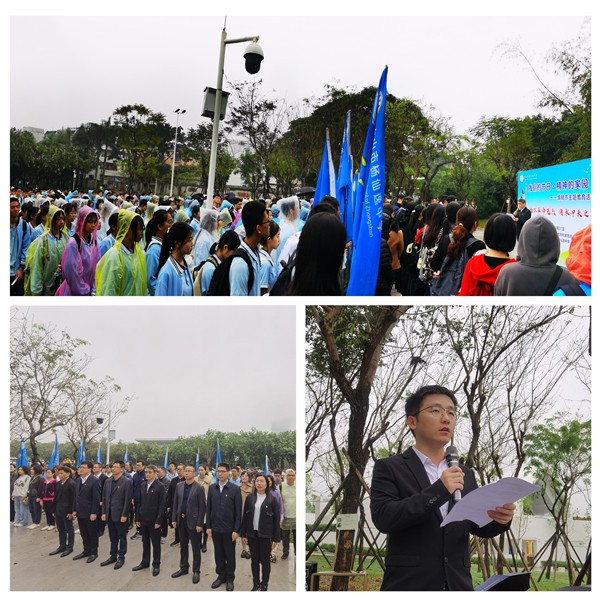 3月31日上午7:30,雖然天蒙毛雨,但高二年級(jí)全體師生、家長(zhǎng)代表帶著陽(yáng)光心情、精神抖擻、滿懷敬意地從學(xué)校操場(chǎng)出發(fā)。