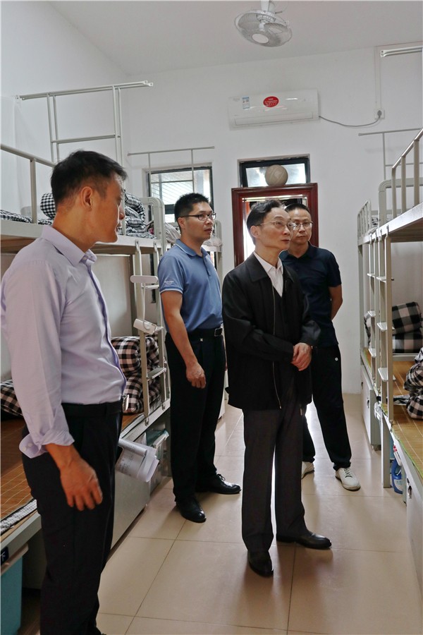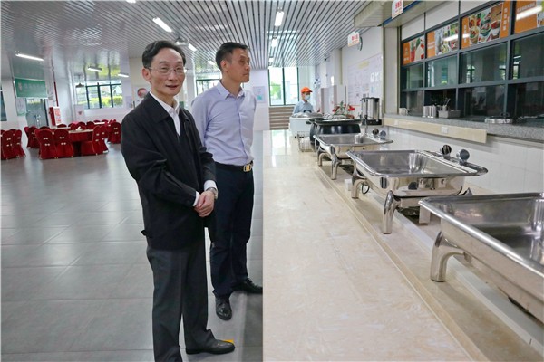在宿舍區(qū),周信提出要加強(qiáng)宿舍管理,高標(biāo)準(zhǔn)嚴(yán)要求,培養(yǎng)學(xué)生自立自理能力和良好生活習(xí)慣,積極創(chuàng)建干凈舒適、安全文明的宿舍環(huán)境。在了解到學(xué)校以“辦好學(xué)校先從辦好飯?zhí)瞄_(kāi)始”為原則,實(shí)施自主經(jīng)營(yíng)模式,多措并舉打造一流師生飯?zhí)?,周信?duì)此高度贊揚(yáng),“不僅抓住師生的胃,更抓住師生的心”,學(xué)校把食堂辦好,體現(xiàn)了對(duì)師生最直接、最貼心的關(guān)懷。
