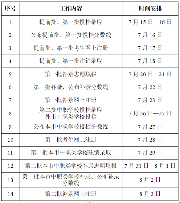 我市普通高中將于7月15日正式開始投檔,日程安排如下: