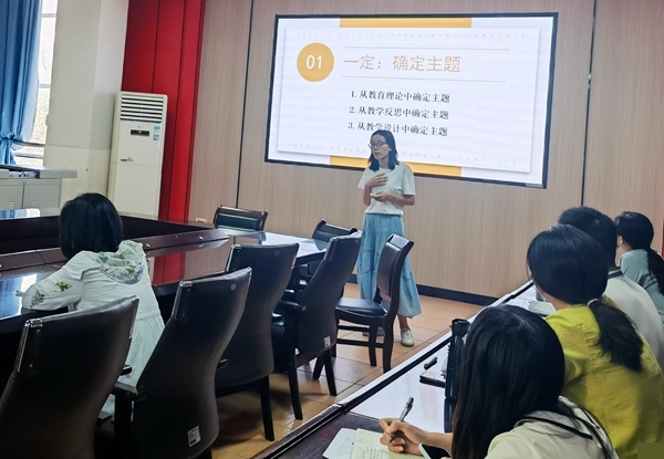 陳姍姍老師講到,要上好課,堅持寫教學(xué)反思,充分利用教學(xué)反思。教學(xué)在論文寫作中占據(jù)80%的重要性,因此,老師們要重視教學(xué)反思的寫作,通過教學(xué)反思寫透一個問題,從教學(xué)反思中提煉出論文。結(jié)合自己多篇已發(fā)表的教學(xué)論文,陳姍姍老師詳細(xì)講授了如何通過“一分二定三整合”制定論文框架,包括:確定論文主題,切分觀點的原則和策略,整合主題、觀點和素材的方法。