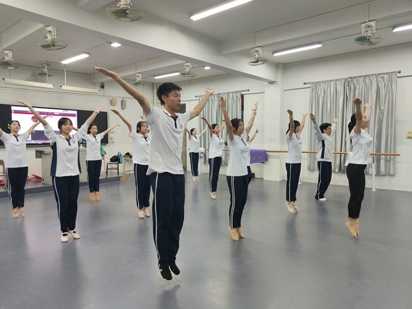 5月12日第一次集結(jié)完畢開始排練。在音樂科組劉姿老師的帶練下,12位同學(xué)不到半小時就學(xué)會了所有的動作。 5月16日,心理科組黃翠媚老師帶著孩子們到錄播室,進行第一次實地彩排。