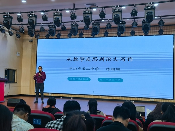 2023年3月13日晚,中山市第二中學報告廳內(nèi)燈光明亮,教研氛圍濃厚。在學校領(lǐng)導的大力支持下,中山市第二中學寫作組開展了第六次教學論文研磨活動。本次活動由學校教科室歐陽珊副主任主持,中山市青年教師領(lǐng)軍人才中山市第二中學陳姍姍老師進行專題講座,中山市寫作組專家老師對論文進行點評和指導。學校寫作組成員、青年教師們滿懷學習熱情,積極參加了本次學習活動,感到收獲滿滿。