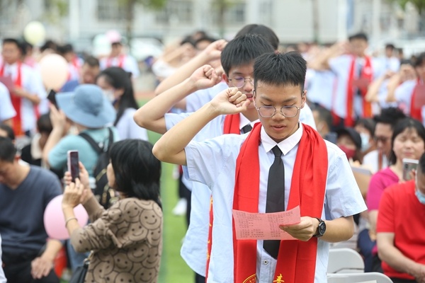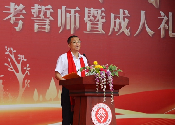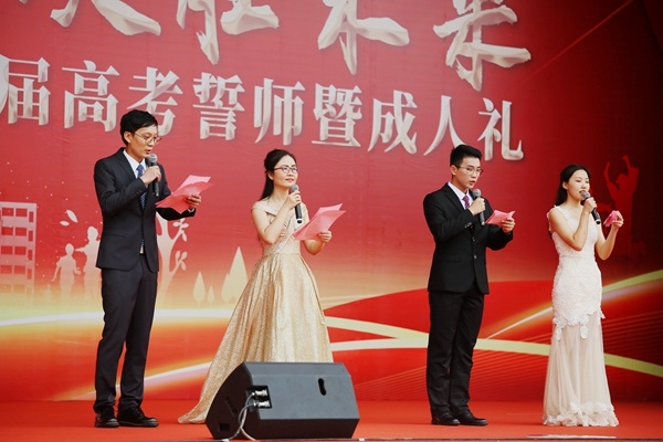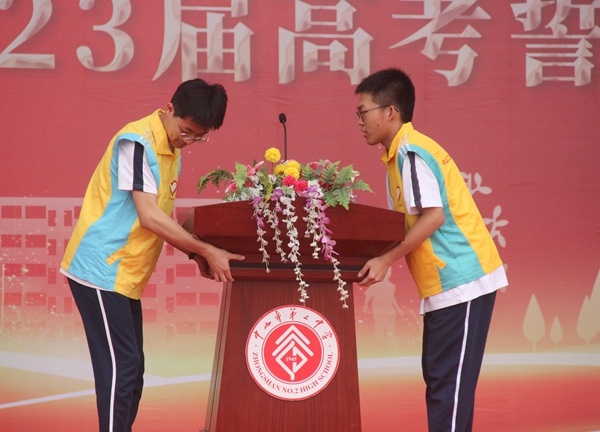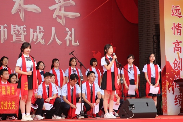 正心立誓,賡續(xù)華章。成年不僅意味著年齡的變化,更意味著社會角色的轉(zhuǎn)變,領(lǐng)導(dǎo)嘉賓們、家長們?yōu)閷W(xué)子戴上成人徽章,披上紅圍巾、贈送《中華人民共和國憲法》。以夢為馬,挑起責(zé)任擔(dān)當(dāng)。在莊嚴(yán)的氛圍中,團委副書記鐘李斌帶領(lǐng)全體高三學(xué)子進行了鄭重的宣誓。