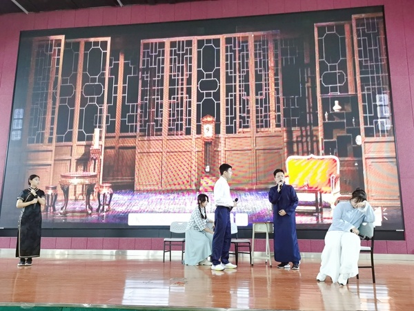 第二個(gè)節(jié)目是高一17班的話劇《雷雨》。戲劇,有沖突才有看點(diǎn)?!独子辍非楣?jié)跌宕起伏,人物關(guān)系錯(cuò)綜復(fù)雜,演員們?yōu)橛^眾展現(xiàn)了兩個(gè)家庭的恩怨情仇、人世間情感的酸甜苦辣!