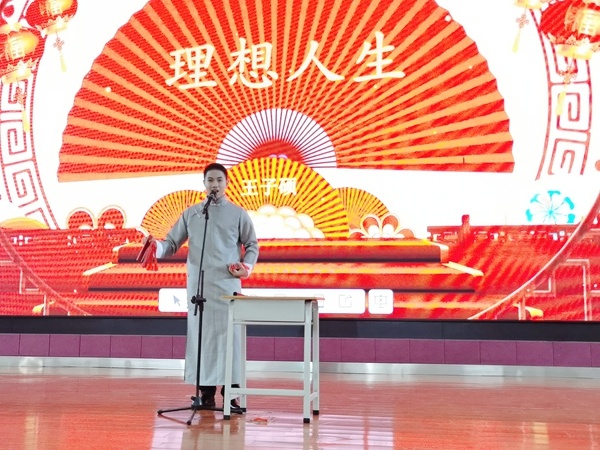 高二8班王子碩同學(xué)上臺(tái)方式特別,他一路展示熟練的快板表演上臺(tái),給大家?guī)淼墓?jié)目是單口相聲《理想人生》。他的語(yǔ)言幽默風(fēng)趣,輕松搞笑、內(nèi)容貼近生活吸引觀眾。觀眾席上不時(shí)傳來一陣又一陣歡聲笑語(yǔ),掌聲更是連連不斷。
