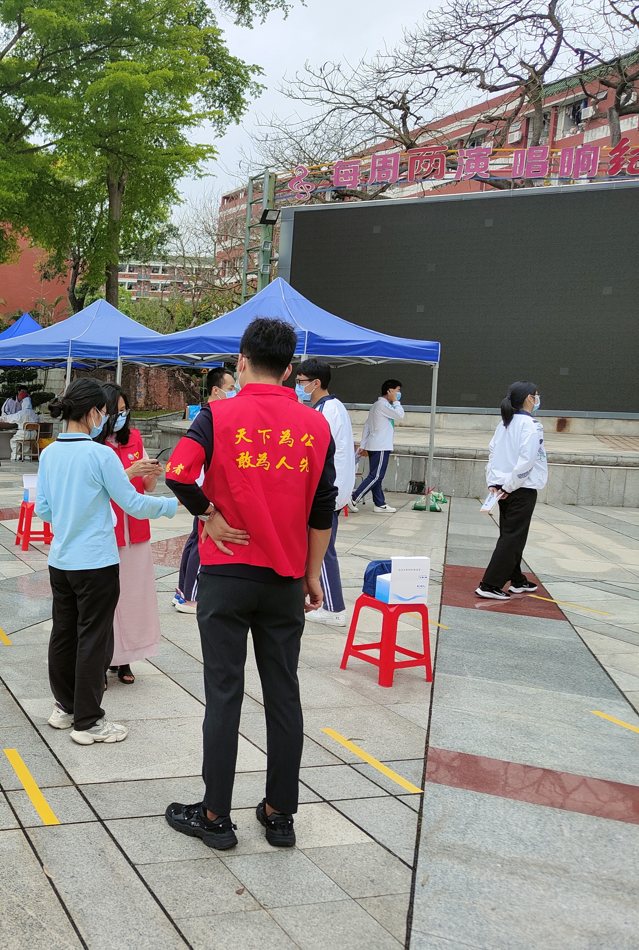 3月26日下午,中山紀(jì)念中學(xué)收到南朗街道(翠亨新區(qū))疫情防控指揮部下發(fā)的關(guān)于開(kāi)展區(qū)域全員核酸檢測(cè)的重要任務(wù)。對(duì)此,校黨委迅速行動(dòng),嚴(yán)密部署,快速設(shè)置4個(gè)核酸采樣點(diǎn)、24個(gè)采樣單元,當(dāng)天晚上組建教師志愿服務(wù)隊(duì)6隊(duì)共60人,科學(xué)制定分區(qū)分批檢測(cè)計(jì)劃并及時(shí)向全校師生發(fā)出27日開(kāi)展全校核酸檢測(cè)的預(yù)通知。