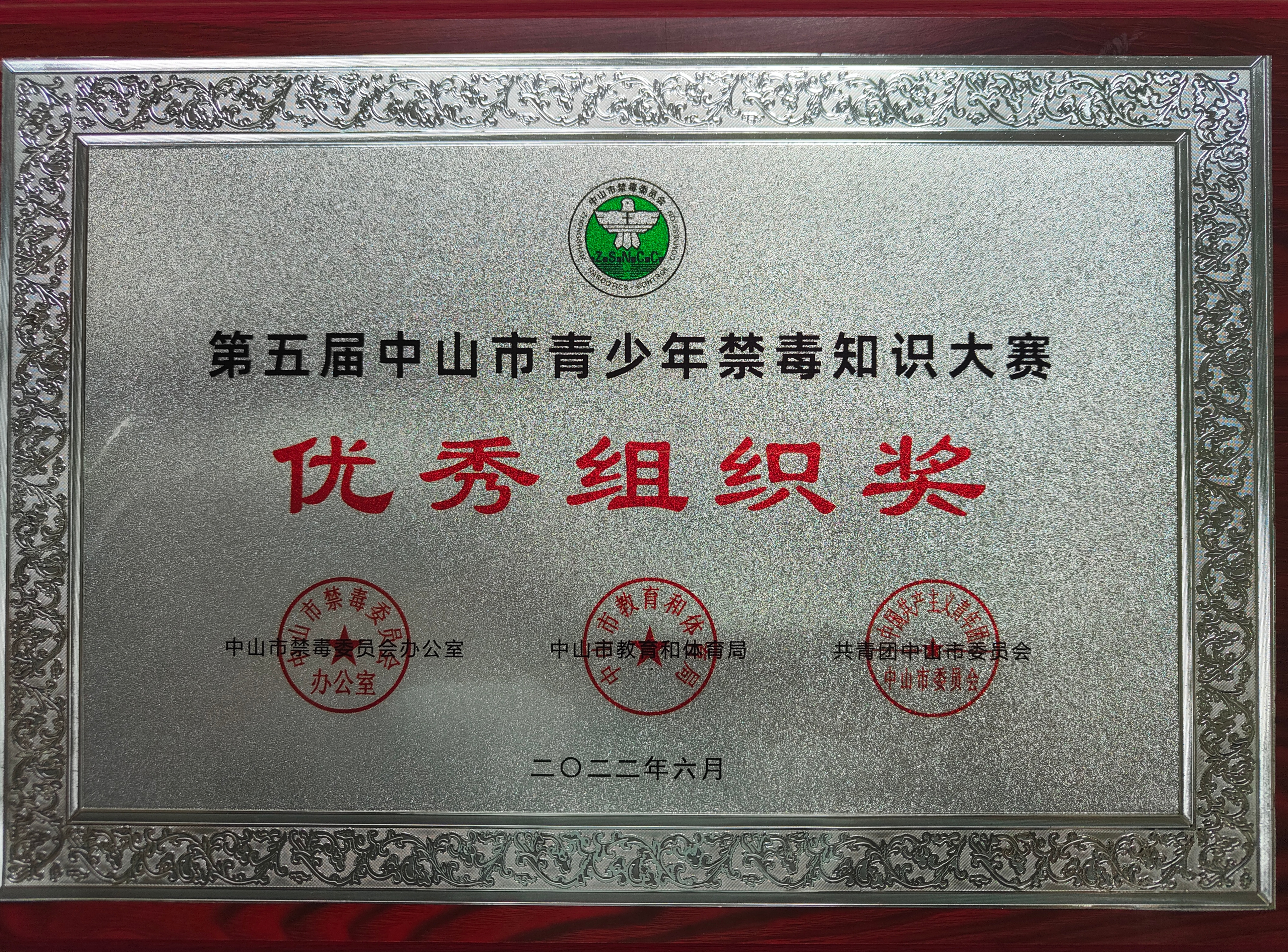 此次禁毒知識競賽進(jìn)一步營造了濃厚的禁毒宣傳教育氛圍,加強(qiáng)了青少年學(xué)生對毒品預(yù)防和毒品危害的認(rèn)識,同時也進(jìn)一步引導(dǎo)青少年追求積極健康向上的生活方式。最終,我校與坦洲鎮(zhèn)禁毒辦、沙溪鎮(zhèn)教育和體育事務(wù)中心等單位一同獲評“第五屆中山市青少年禁毒知識大賽優(yōu)秀組織獎”。