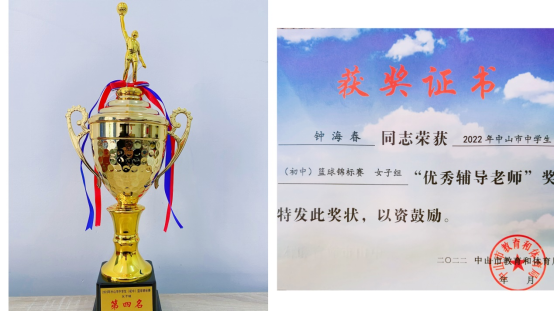 近日,從市教體局傳來喜訊,在2022年12月13-17日舉行的中山市初中籃球錦標賽中,我校初中部女子籃球隊在鐘海春老師的帶領下,以良好的賽風、精湛的球藝、頑強的拼搏精神,一路過關斬將,充分展示了“自強不息,敢爭第一”的僑中精神,取得了本屆聯(lián)賽第四名的好成績。鐘海春老師被評為“優(yōu)秀輔導老師”。