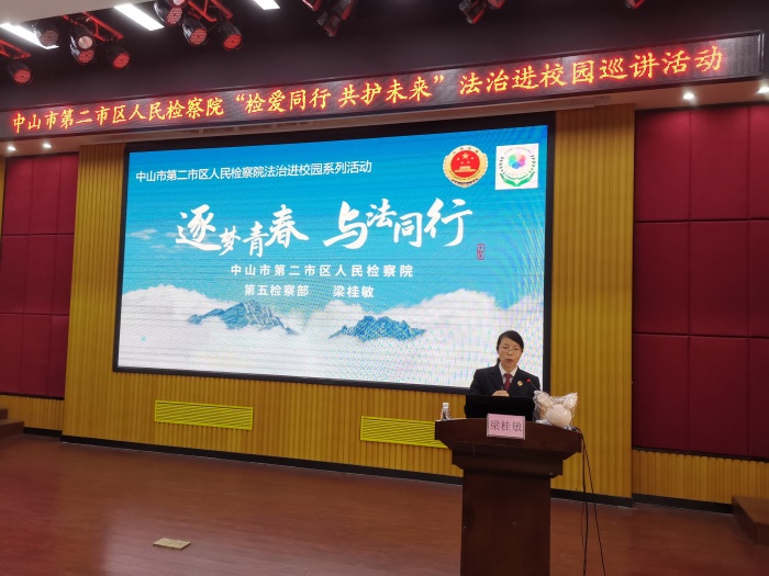 為進一步提高學(xué)生法治意識,增強學(xué)生法治素養(yǎng),提升學(xué)生自我保護能力,2023年2月15日,東鳳中學(xué)在報告廳開展中山市第二市區(qū)人民檢察院“檢愛同行 共護未來”法治進校園巡講活動。中山市第二市區(qū)人民檢察院主任、東鳳中學(xué)法制副校長梁桂敏,東鳳鎮(zhèn)教育和體育事務(wù)中心楊志向老師,東鳳中學(xué)溫永誼副校長以及學(xué)生代表220多人參加本次活動,本次活動由溫永誼副校長主持。