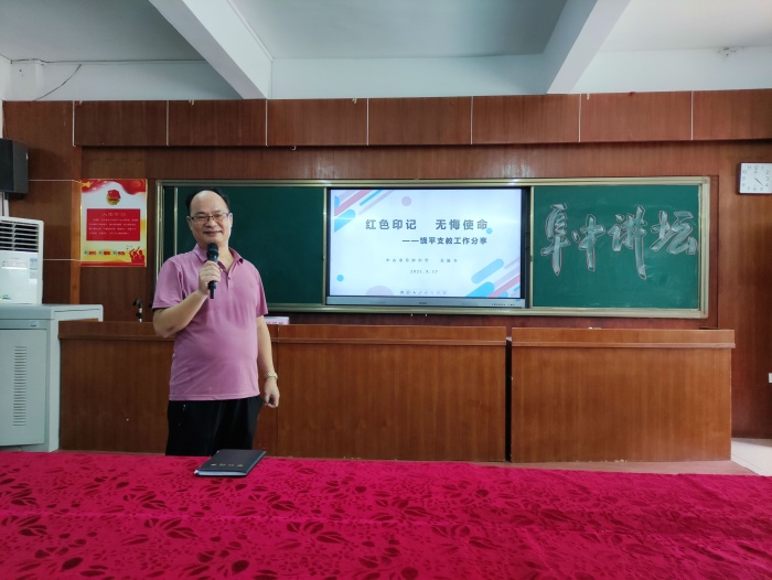 9月24日,阜沙中學(xué)在會(huì)議室舉行“紅色印記,無悔使命”主題校本培訓(xùn),會(huì)議由吳旅令老師主講,分享過去一年在潮州市饒平縣上饒鎮(zhèn)支教工作感想,阜沙中學(xué)全體教師參加本次會(huì)議。