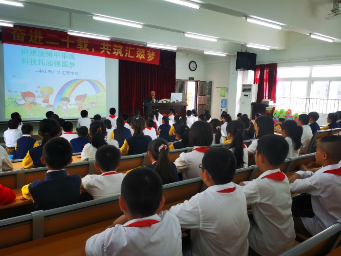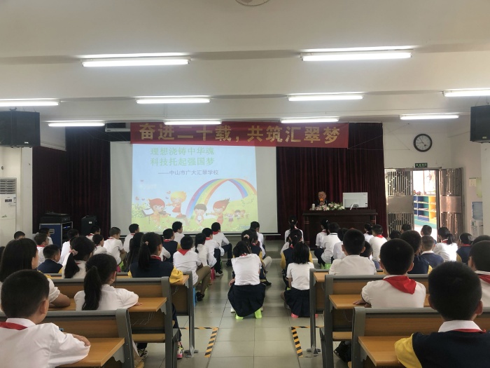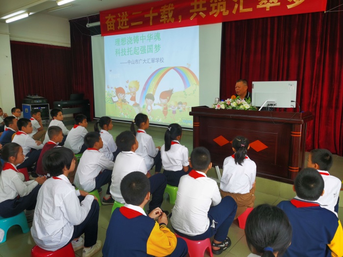 為扎實(shí)而有效地開展《愛黨愛國愛科學(xué),爭當(dāng)新時(shí)代好少年》主題教育活動(dòng),培育新一代有夢(mèng)想的青少年,中山市廣大匯翠學(xué)校特邀坦洲鎮(zhèn)關(guān)工委“五老”講師團(tuán)成員之一的李桂華老師到校進(jìn)行《理想澆鑄中華魂,科技托起強(qiáng)國夢(mèng)》主題教育講座。