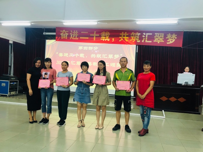 隨后,全體教師觀看了2020年最美教師代表——華雨辰的優(yōu)秀事跡,在抗擊新冠肺炎疫情戰(zhàn)斗打響后,華老師自愿加入志愿者隊伍,無私無畏地沖在“戰(zhàn)役”第一線,她用實際行動為廣大師生做出了榜樣,展現(xiàn)了人民教師的職責與擔當。同時,通過公平、公正的民主選舉,匯翠學校也涌現(xiàn)出一批愛崗敬業(yè)、無私奉獻的最美匯翠人,陳秀文校長為何少碧老師、樂鑫老師、張云老師、周潔校醫(yī)、王克均師傅頒發(fā)證書,他們將不忘初心,砥礪前行,繼續(xù)用自己的行動書寫教育最美的華章。
