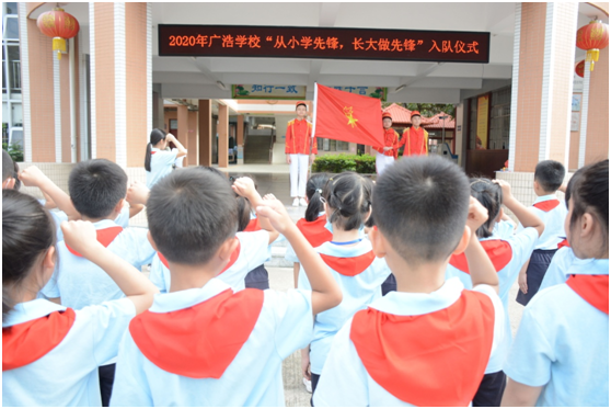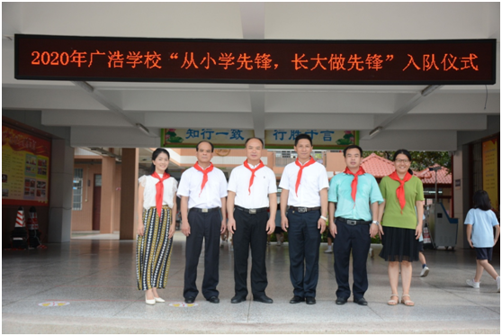 隊(duì)旗飄飄,星星火炬閃耀,為慶祝“六一”兒童節(jié),2020年5月29日早上,中山市廣浩學(xué)校少先大隊(duì)部組織一年級(jí)學(xué)生舉行隆重的“從小學(xué)先鋒,長(zhǎng)大做先鋒”主題入隊(duì)儀式。廣浩學(xué)校黨支部書記楊善德、少工委主任黃飛躍、德育處許向陽(yáng)主任、梁超勝主任、團(tuán)委莫欣老師、少先大隊(duì)輔導(dǎo)員陳燕坪老師出席了入隊(duì)儀式。