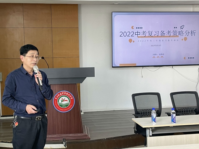 3月4日紀中浪網(wǎng)中學邀請沈偉忠專家到學校開展2022年中考復習備考策略分析專題講座。學校初三全體教師、初一和初二全體備課組長,以及所有空課的教師在學校教師會議室共同聆聽了這場精彩的講座。