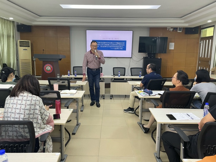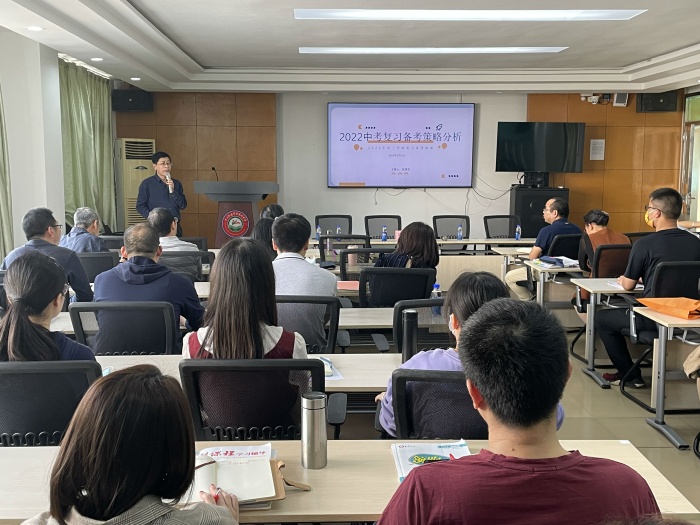 沈偉忠專家講座的主題是《2022中考復習備考策略分析》。沈偉忠專家為老師們分析了前兩年中考的情況與近年中考試題題型和考點,推測2022年中考考題可能出現(xiàn)的變化,探討教師的備考策略與方法。提出中考考題在變,但是以基礎(chǔ)為本,萬變不離其宗。