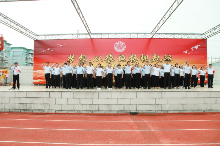 一片冰心,立德樹人傳千古真諦;三尺杏壇,教人求真鑄百年大計(jì)。緊接著,全體教師在教導(dǎo)主任鄧新軍老師的帶領(lǐng)下,面向國旗高舉右手,莊嚴(yán)宣誓。錚錚誓言不僅是教師從業(yè)的宣言,更是對(duì)教育的莊嚴(yán)承諾。整個(gè)活動(dòng)也在響徹德恒上空的聲聲誓言中完滿落下帷幕。
