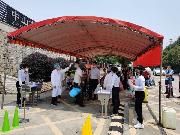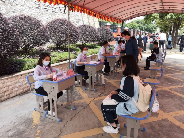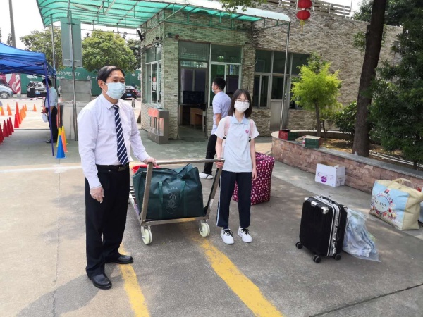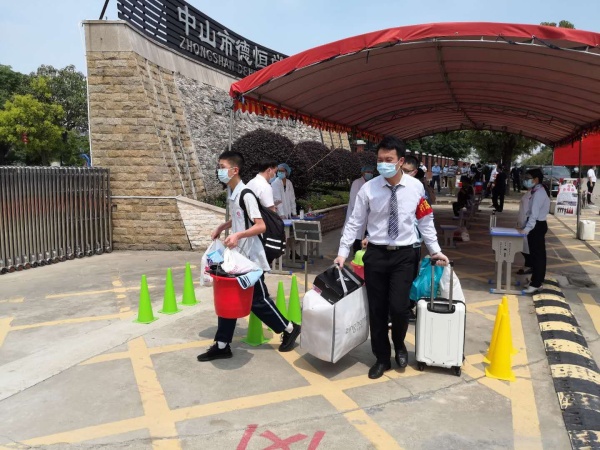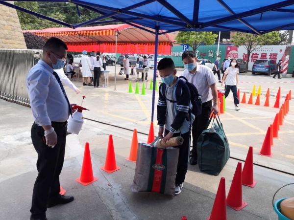 為了使初三和高三學(xué)生錯(cuò)峰返校,學(xué)校將初三學(xué)生的返校報(bào)到時(shí)間定為下午13時(shí)到15時(shí),但中午12時(shí)30分左右,已經(jīng)可以看到有零星的返校心情較為急切的學(xué)生和家長拖著行李在校門口周邊立等,而此時(shí),負(fù)責(zé)相關(guān)工作的老師尤其是班主任們也已經(jīng)開始緊鑼密鼓的準(zhǔn)備。