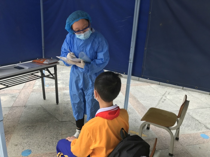 在實戰(zhàn)演練中,從學生入校門接受晨檢開始,對晨檢落實、發(fā)現(xiàn)病例、詢問病情、病例隔離、啟動應急預案、登記報告、聯(lián)防聯(lián)控、消毒通風等重點環(huán)節(jié)進行了模擬。整個演練過程緊張有序,有條不紊,情境逼真,預設(shè)合理。最后,陳敏華校長對學校的疫情防控工作進行了部署。提出對新冠肺炎疫情的防控不能有絲毫麻痹大意,進一步細化落實各項防控工作,做好校園的常態(tài)化疫情防控工作。
