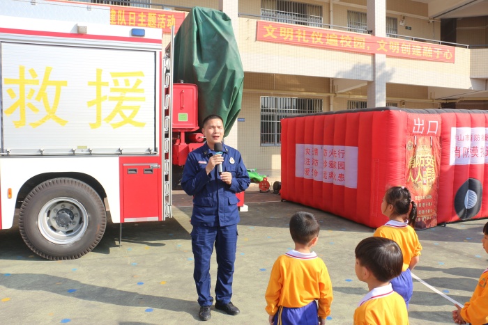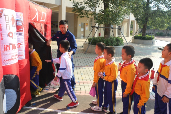隨后,南朗鎮(zhèn)專職消防隊(duì)何龍指導(dǎo)員對(duì)本次演習(xí)進(jìn)行點(diǎn)評(píng)。首先,他肯定了同學(xué)們的表現(xiàn),接著通過介紹幾起發(fā)生在今年的消防事故來提醒同學(xué)們一定要重視消防知識(shí)的學(xué)習(xí),形成良好的安全意識(shí)。為了加強(qiáng)同學(xué)們的應(yīng)急能力,學(xué)校組織了學(xué)生參觀了消防車的裝備以及參加“小黑屋”的體驗(yàn)活動(dòng)。