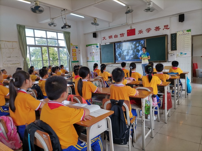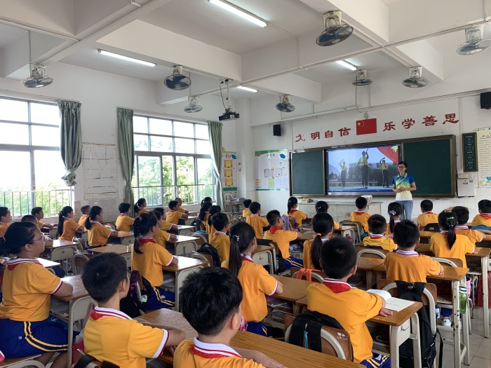 “我們是共產(chǎn)主義接班人,繼承革命先輩的光榮傳統(tǒng),愛祖國,愛人民,鮮艷的紅領(lǐng)巾飄揚在前胸……”當響起這首隊歌時,同學們個個精神飽滿,群情高昂,不由自主地跟著哼唱,一張張稚嫩的臉上流露出同學們對少先隊組織的向往和崇敬。9月28日上午,南朗小學利用班會課組織少先隊員們重溫了少先隊知識,使其加深對中國少年先鋒隊的了解,明確入隊的意義,培養(yǎng)他們對少先隊的情感。