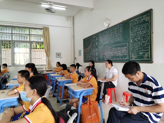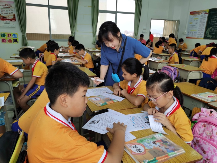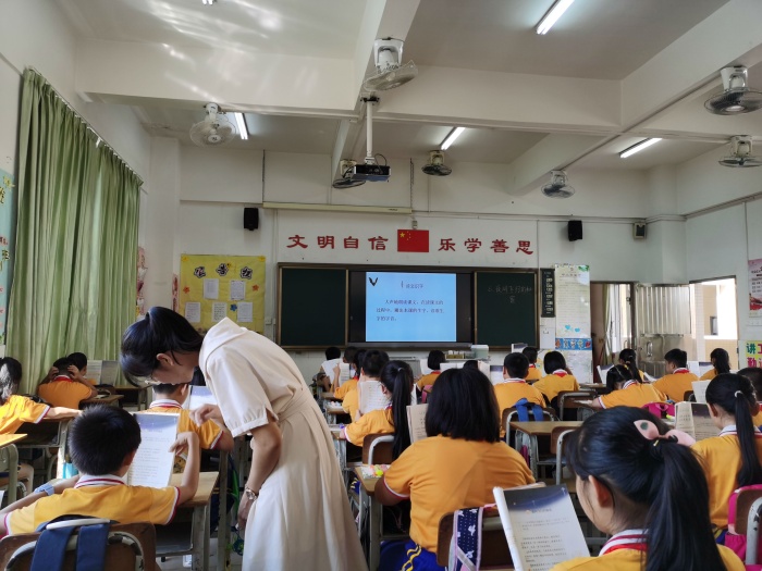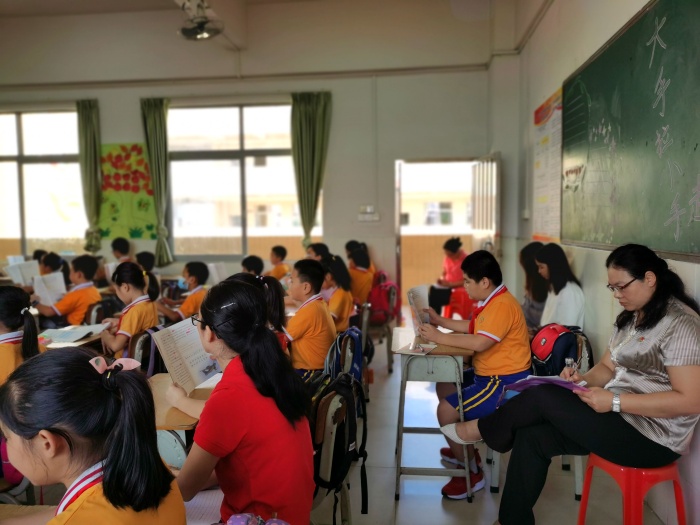 二年級(jí)共進(jìn)組周凱琪老師上課內(nèi)容是識(shí)字2《樹之歌》。周老師是根據(jù)兒童詩特點(diǎn),創(chuàng)設(shè)情境,激發(fā)學(xué)生的學(xué)習(xí)興趣,帶領(lǐng)學(xué)生讀書、識(shí)字。一年級(jí)共進(jìn)組黃南婷老師上課內(nèi)容是《a o e》,黃老師運(yùn)用多種教學(xué)手段讓學(xué)生在輕松愉快的課堂中掌握知識(shí)。如利用故事、根據(jù)課本上的插圖、以做手勢(shì)的形式、借助兒歌,識(shí)記字形。四年級(jí)共進(jìn)組廖賢芬老師上的是《夜間飛行的秘密》第一課時(shí),生字詞的學(xué)習(xí)、主要內(nèi)容的概括等,第一課時(shí)目標(biāo)任務(wù)十分具體。五年級(jí)共進(jìn)組賴云怡老師上課內(nèi)容是《摔跤》,先閱讀片段,四人小組合作學(xué)習(xí),緊扣人物的動(dòng)作,了解主人公鮮明的特點(diǎn),最后進(jìn)行小練筆,續(xù)寫第二次比賽的過程。六年級(jí)共進(jìn)組盧凱耀老師上的是《燈光》,首先,抓題眼,初識(shí)英雄形象。其次,,四人小組合作學(xué)習(xí),抓句子,提升英雄形象,感受到郝副營(yíng)長(zhǎng)關(guān)心下一代和不怕犧牲的品質(zhì)。
