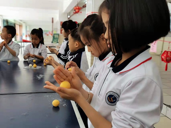 能動(dòng)手搓元宵是孩子們最期待的事情。活動(dòng)負(fù)責(zé)老師首先給同學(xué)們示范如何搓湯圓,同學(xué)們看到老師像變魔術(shù)一樣把糯米粉變成了面團(tuán),再搓成小圓子,大家都情不自禁地鼓起掌來(lái),只待老師一聲令下,洗干凈雙手的同學(xué)們迫不及待拿起了面團(tuán)按照老師教的方法搓、捏、按、團(tuán),許多的“白玉丸”呈現(xiàn)在大家面前。午餐時(shí)間,食堂的師傅和阿姨,把湯圓煮好,大家津津有味地品嘗著自己制作的湯圓,體驗(yàn)勞動(dòng)給自己帶來(lái)的快樂(lè)。