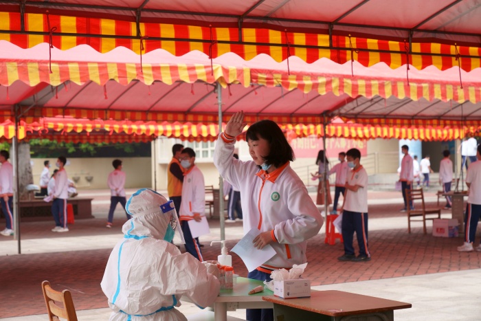 根據(jù)上級疫情防控工作精神,為保障廣大師生生命安全和身體健康,筑牢疫情防控校園防線,確保學(xué)校教育教學(xué)工作與疫情防控工作有序推進。3月31日上午,三角中學(xué)開展全體師生教職工核酸檢測工作。為確保核酸采集工作順利進行,學(xué)校領(lǐng)導(dǎo)高度重視此次核酸檢測工作,學(xué)校疫情防控工作領(lǐng)導(dǎo)小組統(tǒng)籌部署,提前制定檢測方案,從人員安排、場地布置、路線規(guī)劃、班級調(diào)度、信息收集等方面進行周密部署,確保各環(huán)節(jié)工作順暢。