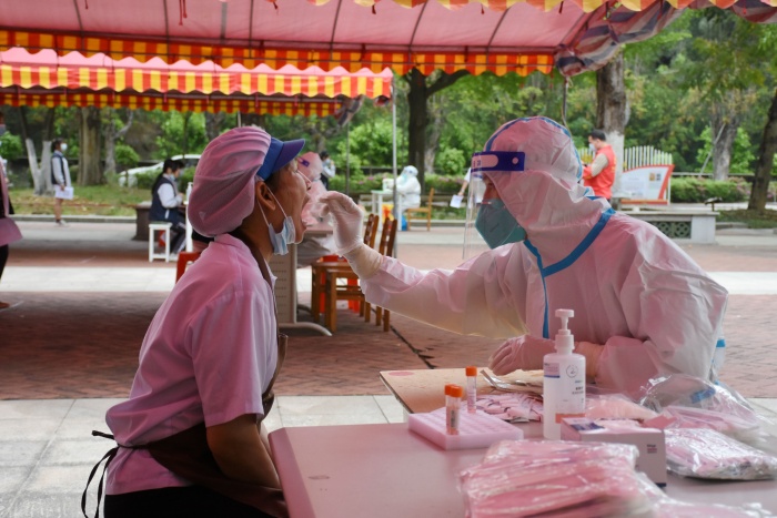 “全副武裝”的醫(yī)護人員一絲不茍,洗手消毒、拆棉簽,耐心地引導(dǎo)廣大師生完成咽喉拭子采樣,過程科學(xué)、規(guī)范。此次受檢人員不僅包括部分學(xué)生和全體老師,還有學(xué)校的宿管、保安、保潔及食堂人員等重點人群,每位受檢人員用自己的實際行動為校園防疫貢獻出自己的一份力量。