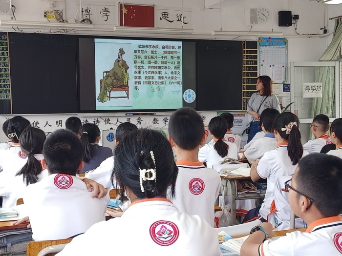 本次教研活動(dòng)第一環(huán)節(jié)是跟崗老師上課,首先是跟崗教師張海波執(zhí)教的初一語(yǔ)文《駱駝祥子》。張老師立足教材,以祥子的悲劇探因?yàn)橹黝},通過(guò)給每個(gè)章節(jié)取小標(biāo)題的形式帶著學(xué)生再次重溫故事情節(jié)。在此環(huán)節(jié)中,張老師特別設(shè)置了有關(guān)祥子“三起三落”的情節(jié),讓同學(xué)們梳理概括。同學(xué)們?cè)谑煜で楣?jié)之后,張老師聚焦祥子的“三落”,引導(dǎo)學(xué)生對(duì)關(guān)鍵語(yǔ)句、段落進(jìn)行批注,在此基礎(chǔ)上,帶領(lǐng)學(xué)生細(xì)細(xì)琢磨祥子的心理變化,分析祥子悲劇的社會(huì)原因和個(gè)人原因。緊接著是跟崗教師余德芬,她執(zhí)教的是初一語(yǔ)文《賣(mài)油翁》。余老師首先范讀課文,糾正字音,然后帶著全班學(xué)生齊讀課文,讀出節(jié)奏。接下來(lái),余老師結(jié)合學(xué)案疏通本文文意,重點(diǎn)關(guān)注課文中的實(shí)詞和虛詞教學(xué),并帶領(lǐng)學(xué)生著眼于課文中的兩個(gè)人物形象,借助學(xué)案分析人物形象的刻畫(huà)和特點(diǎn)。最后,運(yùn)用分析人物形象的方法,課堂上進(jìn)行練筆。