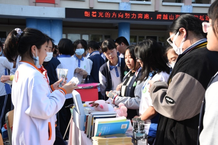 同學們熱情高漲,廣場上暖意融融,每班派出的“售貨員”有模有樣,賣力宣傳,為了吸引顧客,同學們各出奇招,有的精心制作海報,將自己班上的義賣店布置得極具個性;有的班級打出了買商品贈禮物的促銷手段,吸引了不少顧客;有的班級充分利用自己的人脈,去其他班級招攬顧客,義賣場面相當火爆,給緊張的學習氛圍帶來一絲輕松。還有穿著各類玩偶服的同學賣力的宣傳,讓大家忍不住為他們駐足,同學們的熱情也感染了老師,老師們也紛紛加入其中,挑選商品、討價還價,忙得不亦樂乎,整個廣場人頭攢動,熱鬧非凡,買的、賣的交匯出一曲生動的校園愛心之歌。