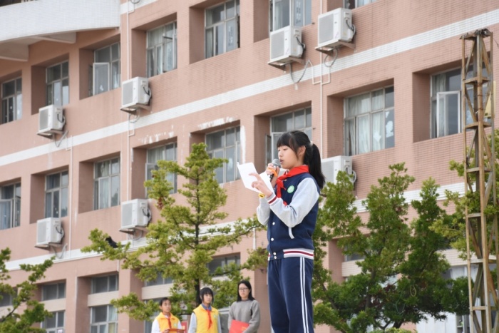 升旗儀式完畢,初二(12)班學生代表鄭妍進行國旗下講話。鄭同學提到作為新時代的中學生,我們應當學習雷鋒的“釘子精神”,從身邊的小事做起,從珍惜時間上做起,艱苦奮斗,勤奮好學,爭做學習的惜時標兵。她呼吁同學們,讓大家不負時代,不辱使命,將學習雷鋒與勤奮好學相結合,做銳意進取的開拓者,勇立潮頭的實干者,奉獻社會的志愿者。在實現(xiàn)中展現(xiàn)自己青春風采,書寫壯麗篇章,爭做新時代的雷鋒精神傳人!