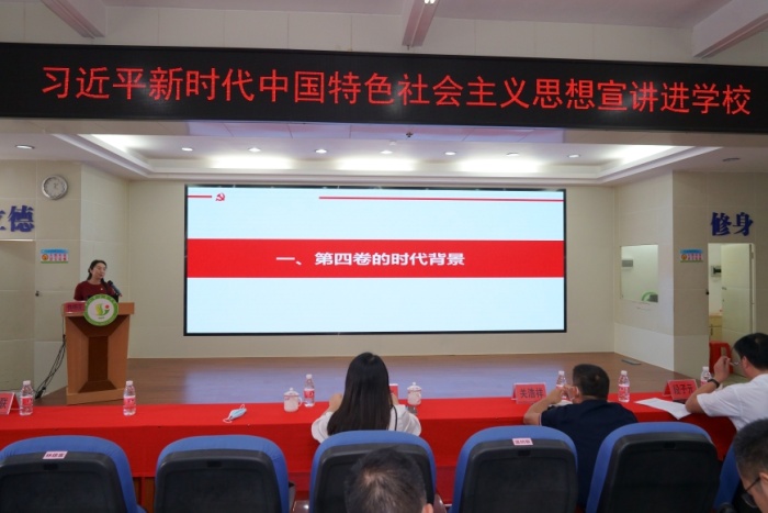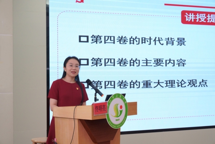 宣講會(huì)由中山市委宣講團(tuán)成員,廣東開放大學(xué)(廣東理工職業(yè)學(xué)院)教授佟明亮同志進(jìn)行宣講報(bào)告,佟教授從第四卷的時(shí)代背景、主要內(nèi)容、重大理論觀點(diǎn)等三方面進(jìn)行講授。宣講會(huì)上,黨員教師們聚精會(huì)神地聽取報(bào)告,認(rèn)真記錄,書寫心得。