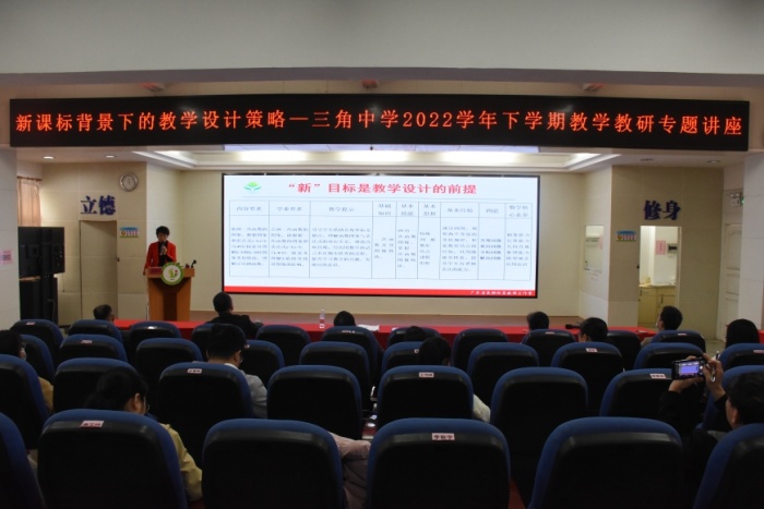 教書路上,孜孜不倦,執(zhí)著與幸福共存;育人途中,諄諄教誨,智慧與情懷同在。為進(jìn)一步深化課程改革,立足新課堂,落實新課標(biāo),用好新教材,探討教學(xué)改革新路徑,構(gòu)建課堂建設(shè)的新樣態(tài),再進(jìn)一步提高三角中學(xué)教師的專業(yè)水平和教育教學(xué)能力,全面提高教育教學(xué)質(zhì)量。2月4日下午,三角中學(xué)開展題為《新課標(biāo)背景下的教學(xué)設(shè)計策略》的講座。