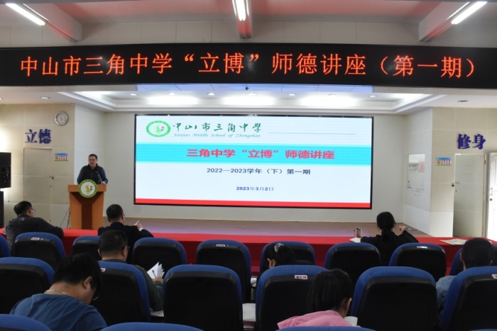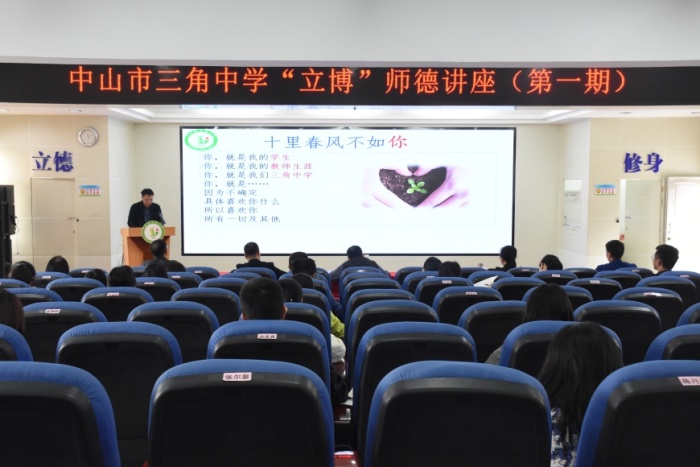 國之大計(jì),教育為本;教育大計(jì),教師為本。師德,是教師之根;師風(fēng),乃教師之魂。為進(jìn)一步規(guī)范教師職業(yè)行為,切實(shí)加強(qiáng)教師隊(duì)伍建設(shè),全面提高教師職業(yè)道德水平和職業(yè)素養(yǎng),激發(fā)教師為人師表、愛崗敬業(yè)、甘于奉獻(xiàn),爭(zhēng)做“四有”教師,三角中學(xué)于3月2日下午開展“立博”師德講座(第一期),全體教師出席了本次會(huì)議。