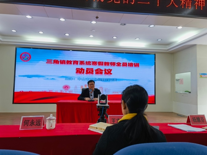 為進(jìn)一步貫徹黨的教育方針,更好地提升全鎮(zhèn)中小學(xué)教師的專(zhuān)業(yè)發(fā)展水平及師德修養(yǎng),使之適應(yīng)新形勢(shì)的發(fā)展,提升教師職業(yè)道德素養(yǎng),強(qiáng)化育人使命感和責(zé)任感,全面推進(jìn)素質(zhì)教育,提高教育教學(xué)質(zhì)量。2023年2月3日下午,三角鎮(zhèn)在三角中學(xué)報(bào)告廳(主會(huì)場(chǎng))召開(kāi)三角鎮(zhèn)教育系統(tǒng)寒假教師全員培訓(xùn)動(dòng)員會(huì)議。三角鎮(zhèn)黨委副書(shū)記何永遠(yuǎn)、鎮(zhèn)教體局領(lǐng)導(dǎo)、鎮(zhèn)教體中心全體人員、三角中學(xué)教師在主會(huì)場(chǎng)參加本次培訓(xùn)動(dòng)員大會(huì),其他學(xué)校教師在本校分會(huì)場(chǎng),通過(guò)視頻直播方式參加會(huì)議。會(huì)議由楊慧芬局長(zhǎng)主持。