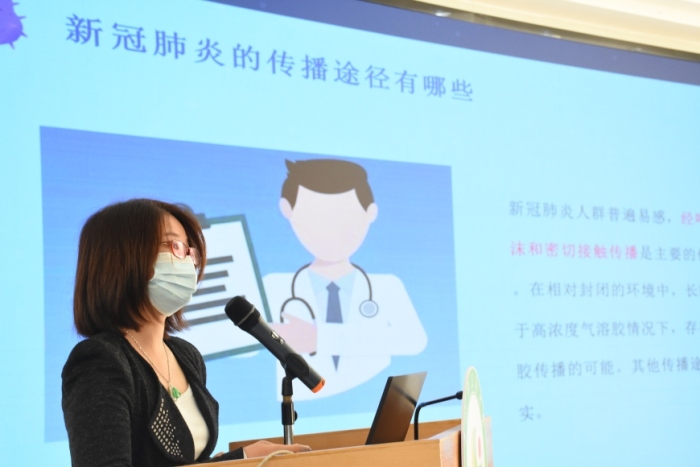 會議的第三項議程,由三角中學(xué)譚宇楹校醫(yī)進(jìn)行新冠病毒防控知識和技能培訓(xùn),譚校醫(yī)從認(rèn)識新冠病毒、個人防護、健康防護知識三個方面進(jìn)行講解。譚校醫(yī)提到做好健康防護尤為重要,要做到戴口罩、勤洗手、常消毒、多通風(fēng)、少聚集,切實維護師生的生命安全和身體健康。