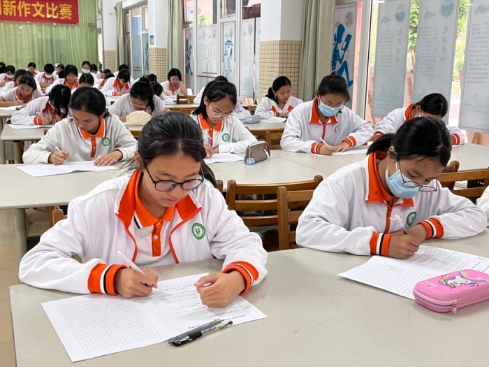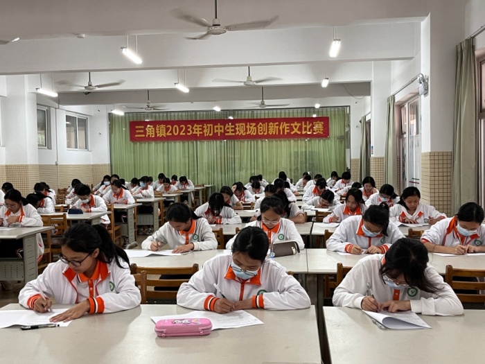 諾貝爾文學獎獲得者海塞說:“沒有什么比沉浸在創(chuàng)作的歡樂與激情中揮筆疾書更美,更令人心醉的事了?!睂懽鞯倪^程,是學生認真觀察、主動思考、用心感悟的語文綜合能力的集中體現(xiàn)。為培養(yǎng)初中生創(chuàng)新作文能力,提高現(xiàn)場快速作文水平,增強創(chuàng)新思維和創(chuàng)新意識,提高他們的語文素養(yǎng)和文化修養(yǎng),4月11日下午,三角中學組織初一、初二年級部分學生參加三角鎮(zhèn)2023年初中生現(xiàn)場創(chuàng)新作文比賽。