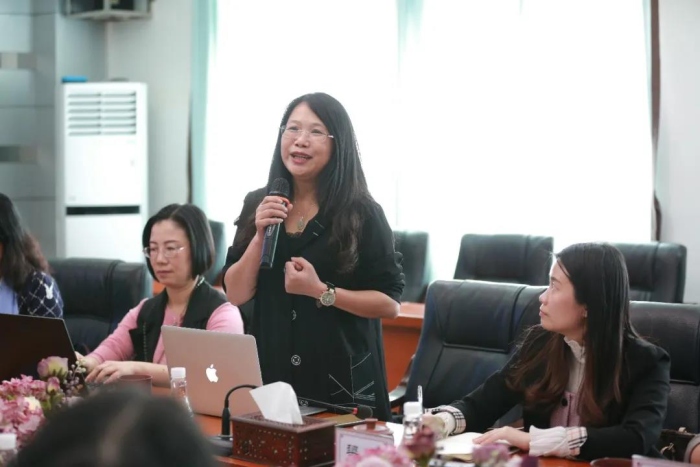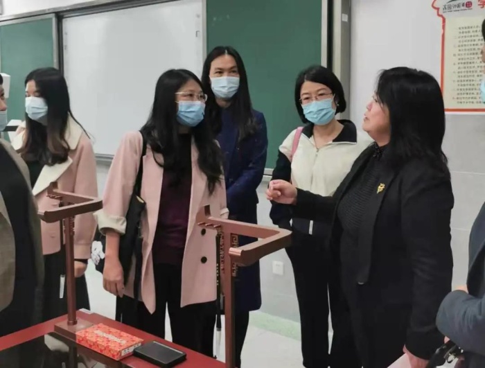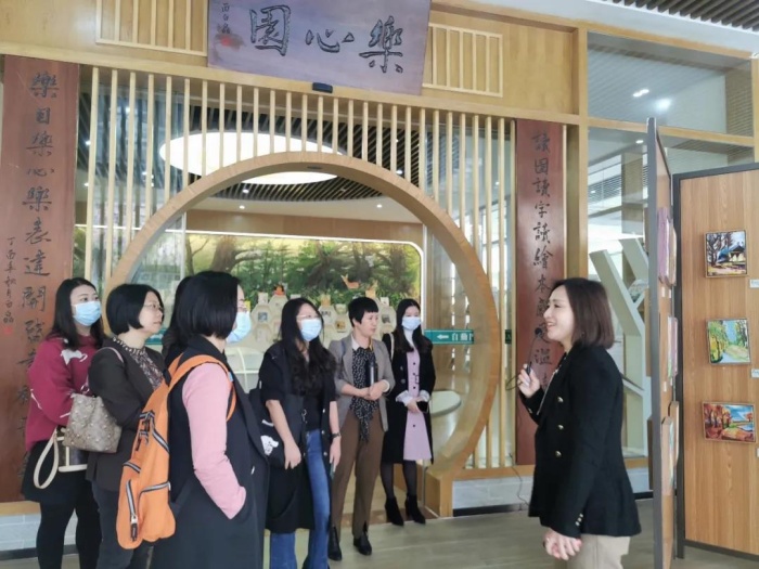 24日下午,在深圳市福田區(qū)荔園外國語小學(xué),工作室一行首先參觀校園,而后齊聚會議室。荔園外國語小學(xué)柳中平校長就大家感興趣的學(xué)科教學(xué)特色、項目式學(xué)習(xí)、如何培養(yǎng)學(xué)生的邏輯思維等話題與成員們進行深入交流。成員們對荔園外國語小學(xué)開發(fā)的語文素養(yǎng)、數(shù)學(xué)思維、英語特色、綜合創(chuàng)意等校本特色課程興趣濃厚。