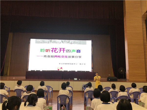為進(jìn)一步做好預(yù)防性侵害未成年人案件的發(fā)生,提高未成年人的防范意識(shí),保護(hù)未成年人遠(yuǎn)離性侵害,在2020年9月25日下午,云衢中學(xué)組織初二級(jí)女生開展題為《聆聽花開的聲音——青春期兩性交往故事分享》的防性侵犯主題教育活動(dòng)。該校請(qǐng)來(lái)了中山市教師發(fā)展中心陳少芳老師給女生們作專題講座,學(xué)校德育處副主任周寶思主持會(huì)議。