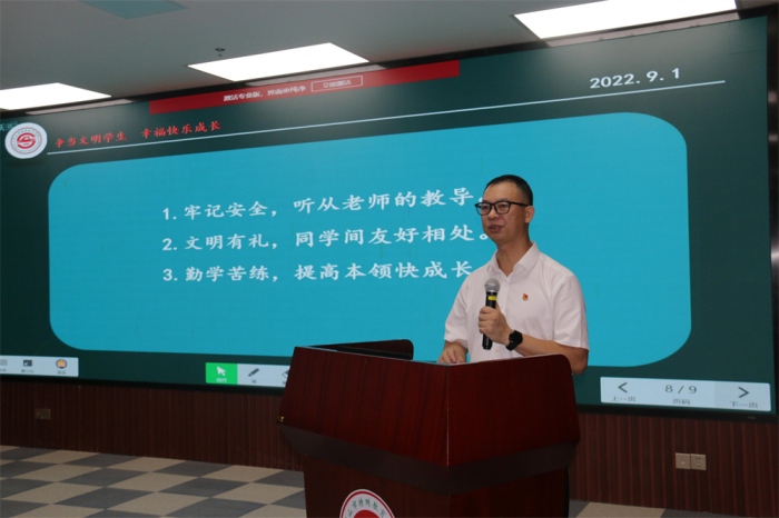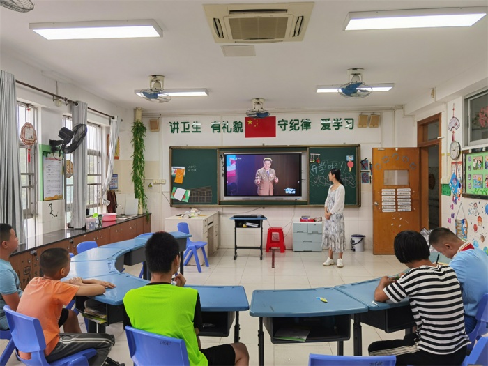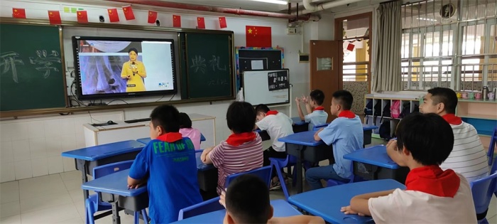 響應(yīng)疫情防控不扎堆、不聚集的要求,除了六年級到綜合樓一樓階梯室舉行現(xiàn)場開學(xué)典禮,其他年級均在教室通過騰訊會議的形式觀看線上直播,聆聽校長、老師的教誨與寄語,為新學(xué)期蓄能助力,加滿“電量”。剛剛赴任的盧超文校長為能陪伴特殊兒童走過一段寶貴的人生路而感懷滿滿、欣喜激動,他倍加珍視與孩子們的第一次見面,為他們送上了溫暖真摯的新學(xué)期寄語。盧校說:“親愛的同學(xué)們,我也會像湯校長一樣愛你們,幫助你們幸??鞓烦砷L的!”樸實真摯的話語,讓所有師生熱淚盈眶、感動不已。他希望同學(xué)們?nèi)巳藸幃斘拿鲗W(xué)生,在特校幸??鞓烦砷L,并提出三點倡議:牢記安全,聽從老師的教導(dǎo);文明有禮,同學(xué)間友好相處;勤學(xué)苦練,提高本領(lǐng)快成長。全校學(xué)生還在教室觀看了“開學(xué)安全教育第一課”,通過學(xué)習(xí),強化了安全意識和自我保護意識。