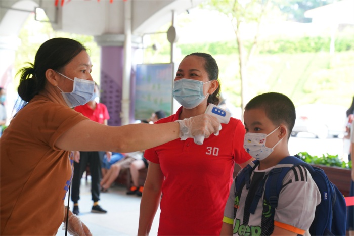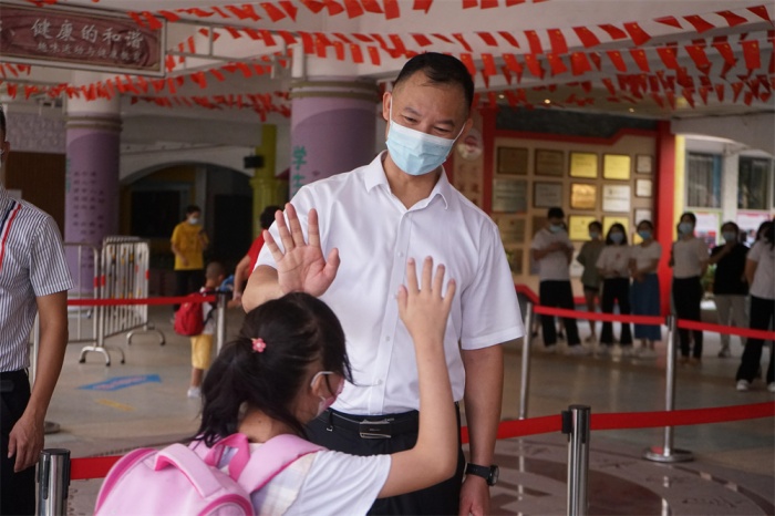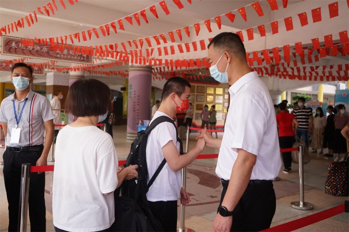 新學(xué)期,特校共有721名學(xué)生、56個教學(xué)班,新入職3位教師。按照疫情常態(tài)化防控要求,同學(xué)們佩戴口罩,在家委、老師的引領(lǐng)下有序排隊入校。優(yōu)化的路線、緊密的交接、有序的測溫,為孩子筑起入校的一道道安全健康屏障。歡喜的見面、親切的問候、溫暖的攙扶、有力的雙手、熱情的幫助,將校園的角角落落都變成了溫情涌動的愛的海洋。