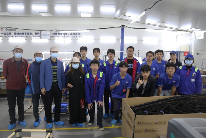 為真實(shí)了解中山中專2019級實(shí)習(xí)學(xué)生在企業(yè)的工作和生活狀況,同時(shí)為了拓寬貴州省六枝特區(qū)職校學(xué)生實(shí)習(xí)和就業(yè)路徑,搭建六枝特區(qū)職校的校企合作平臺,助力中山中專結(jié)對幫扶六枝特區(qū)職校早結(jié)碩果,12月22日上午,中山中專校企合作處主任熊邦鳳帶領(lǐng)貴州省六枝特區(qū)職校張娜娜副校長、中山中專汽車運(yùn)用與維修教研室主任伍家揚(yáng)、校企合作處駐企業(yè)實(shí)習(xí)帶隊(duì)教師程和勛、行政辦宣傳員張衛(wèi)濤一行5人深入中山詩蘭姆汽車零部件有限公司調(diào)研。熊邦鳳一行受到中山詩蘭姆汽車零部件有限公司總經(jīng)理張志超、副總經(jīng)理吳清峰、人事部經(jīng)理黃金鳳等人的熱情歡迎。