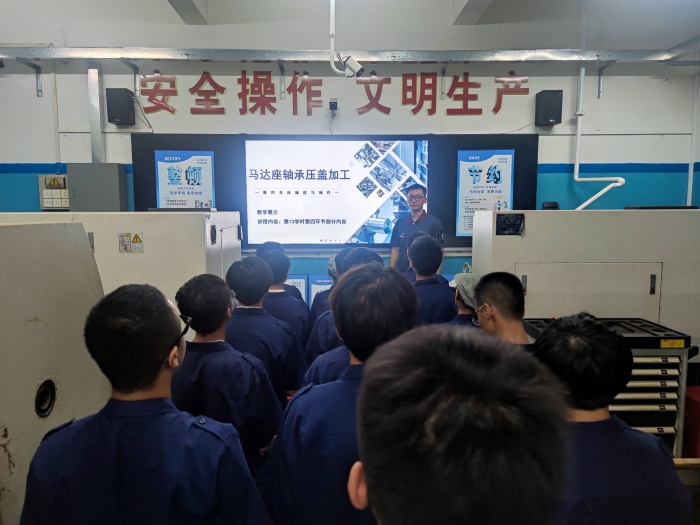 比賽共設(shè)中等職業(yè)教育組和高等職業(yè)教育組兩個(gè)比賽組別,學(xué)校教學(xué)團(tuán)隊(duì)分別針對中等職業(yè)教育組下設(shè)的三個(gè)不同組別進(jìn)行全面準(zhǔn)備。針對公共基礎(chǔ)課程,顏紅艷、朱賽明、韓坤教學(xué)團(tuán)隊(duì)通過長期探索和創(chuàng)新,拓展教學(xué)內(nèi)容的廣度和深度,完成《啦啦操第二風(fēng)格創(chuàng)編》,為體育教學(xué)增添亮點(diǎn)。針對中職專業(yè)技能課程(一組),林國鴻、張文瓈、朱重陽、陳鈞教學(xué)團(tuán)隊(duì)聚焦工業(yè)機(jī)器人領(lǐng)域,優(yōu)化教學(xué)過程,詳細(xì)探討《工業(yè)機(jī)器人風(fēng)扇燈罩涂膠軌跡操作與應(yīng)用》;目前,短視頻、直播是充滿活力的傳播潮流,是數(shù)字時(shí)代下重要的新媒體形態(tài),蘇彩連、彭鳳瓊、張征、王婉娜教學(xué)團(tuán)隊(duì)研究了《非遺掐絲琺瑯短視頻與直播》教學(xué),體現(xiàn)產(chǎn)業(yè)發(fā)展新趨勢。針對中職專業(yè)技能課程(二組),張丹丹、王朋、鄧應(yīng)強(qiáng)、劉彪教學(xué)團(tuán)隊(duì)以減速器為典型案例,對《減速器從動(dòng)軸的測繪與加工》的教學(xué)模式和方法進(jìn)行探討研究;趙芳、史國濤、于陽、鐘煒源教學(xué)團(tuán)隊(duì)則是圍繞《馬達(dá)座軸承壓蓋加工》進(jìn)行教學(xué),致力于優(yōu)化教學(xué)過程,突出重難點(diǎn)的教學(xué)策略。