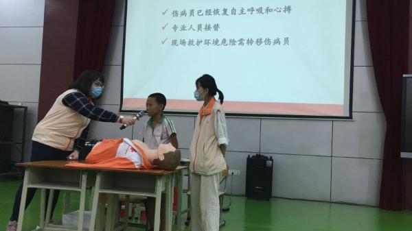 為全面普及應(yīng)急救護(hù)常識(shí),增強(qiáng)廣大師生對(duì)心臟驟停、燒燙傷、溺水、出血等突發(fā)意外傷害事故的認(rèn)知和提升廣大師生的自救互救技能,2020年7月6日下午,三角鎮(zhèn)中心小學(xué)邀請(qǐng)中山市紅十字會(huì)、三角鎮(zhèn)紅十字會(huì)工作人員走進(jìn)校園,舉辦“中山市紅十字會(huì)、三角鎮(zhèn)紅十字會(huì)應(yīng)急救護(hù)培訓(xùn)講座”。擔(dān)任本次活動(dòng)的主講嘉賓是紅十字會(huì)工作人員黎子丹老師,紅十字會(huì)工作人員黃美琪老師協(xié)助培訓(xùn)活動(dòng),參加本次培訓(xùn)活動(dòng)的是三角鎮(zhèn)中心小學(xué)五年級(jí)全體師生。