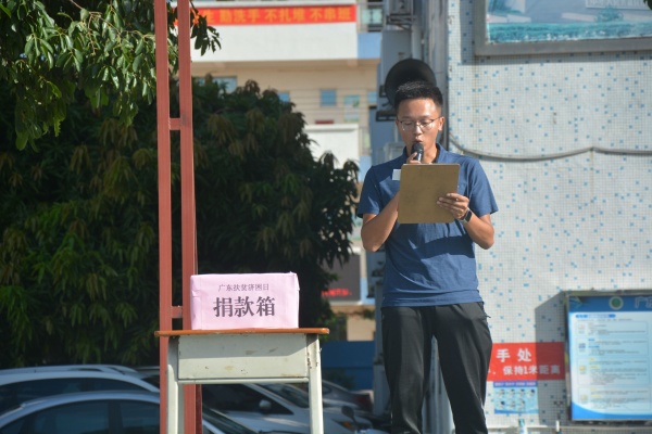 在活動(dòng)現(xiàn)場(chǎng),廖曉武老師宣讀了活動(dòng)倡議書(shū),校長(zhǎng)梁炳華等學(xué)校行政做出表率,帶頭募捐,教職員工積極響應(yīng)。而滿腔熱忱的同學(xué)們也踴躍慷慨解囊,同伸援手。各班班長(zhǎng)排著整齊的隊(duì)伍,踴躍捐款,伸出愛(ài)心之手,匯聚愛(ài)的力量!